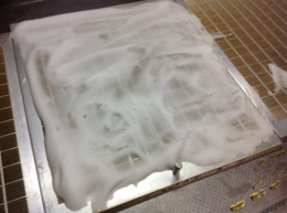 ②泡ポンプで作った泡を換気扇 の表と裏 両面 に塗ります。