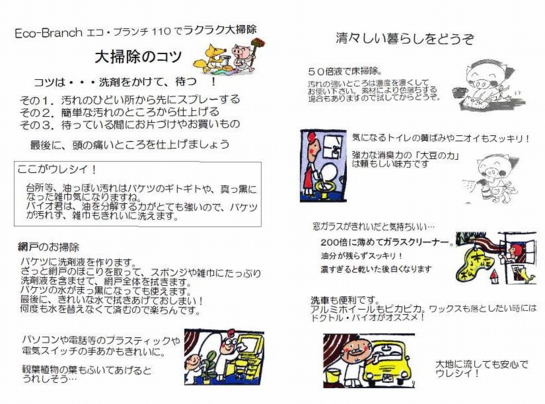 普通のスプレー容器を使っても充分「Eco-Branch 110」の汚れ落ちに満足していました。スプレーしてしばらく放っておくだけで、網戸掃除も、台所の床の古い汚れも簡単にすっきり落ちます。大掃除がものすご~く楽になりました。
