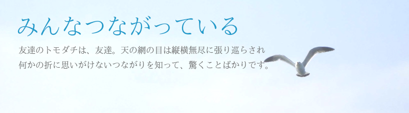 通信「ゆっくりずむ」の送り状裏の、皆さまとの思いがけない繋がりをつづった「みんなつながっている」を楽しみにして下さるお声を頂きます。出会いは思いがけない展開も始まる宝物。ご縁の一端をアップしました。