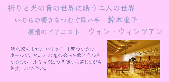 命の響きをつむぐ歌い手 鈴木重子&瞑想のピアニスト ウォン・ウィンツアン